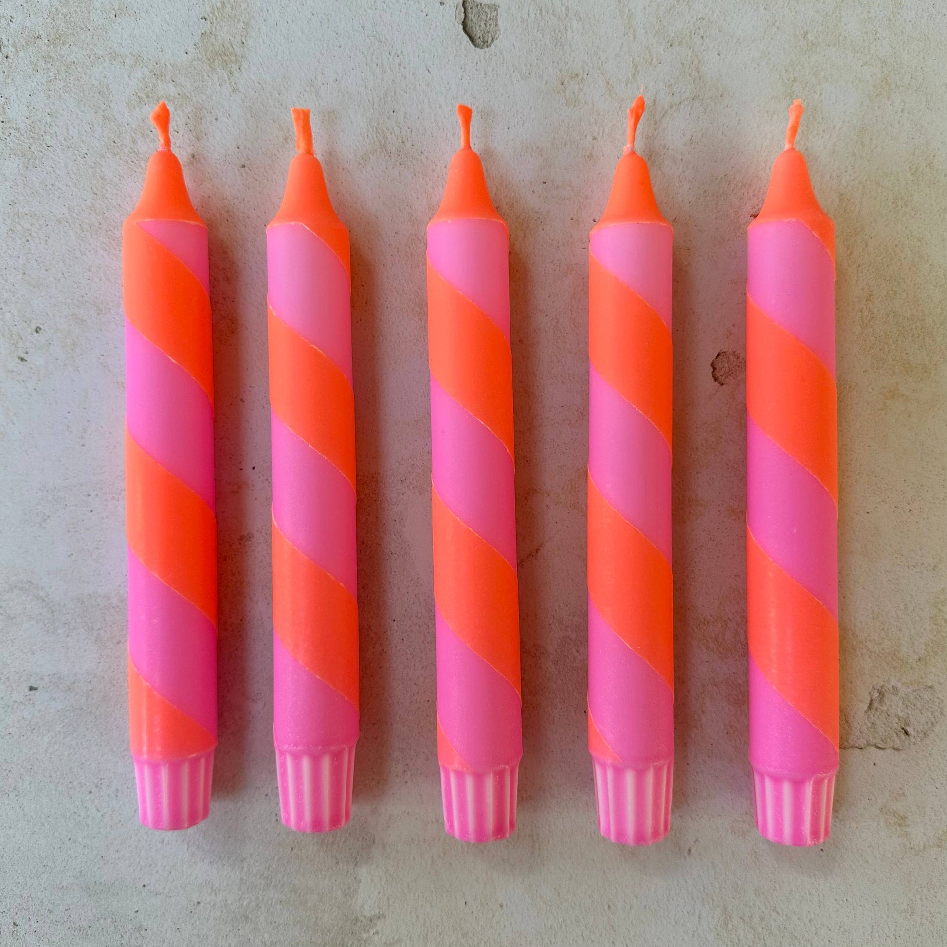 Neon Orange And Pink spiral twist Hand Dipped Candles